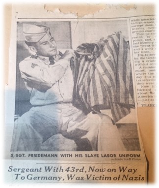 After Plaszow, Richard and Zygmunt began a hellish journey through Auschwitz- Birkenau, Dachau, Kaufering-Landsburg, Augsburg, and the underground Messerschmitt-werke facility. Surviving numerous brushes with death, Richard and his brother were forced on a death march from one of the sub-camps in April of 1945. The march was designed to kill prisoners through exertion. Those that survived the march were led to a clearing in the woods near Klimach, where they were to be murdered. A U.S. bomber squadron flying over the area spotted the execution field, popped smoke and alerted a nearby tank destroyer unit of the situation. The U.S. unit (part of the Rainbow Division) rolled up on the site and saved the survivors of the concentration camp from execution. After liberation Richard joined the Polish Guard, hoping to return to his beloved Poland. Unfortunately, the communists had already infiltrated and taken control of Poland. The Polish Guard unit was put on a train that was ostensibly going to Poland; however, the train was diverted and it became apparent to some on the train that Russia was the real destination. Richard and a small group of others jumped from the train. Those that remained on the train were most likely executed by the NKVD. Upon his return to the U.S. base, Richard was offered transport to the U.S.A., which he accepted.